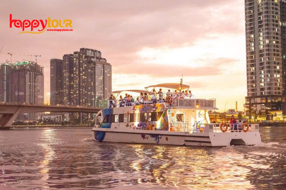 Quý khách lên tàu tại bến Bạch Đằng, sau đó tàu Saigon RiverSight Seeing sẽ đưa Quý khách ngắm cảnh sông Sài Gòn, đi qua: Cột Cờ Thủ Ngữ - Bến Nhà Rổng - Cảng Bến Nghé - Công viên hoa hướng dương - Cầu Ba Son - Landmark 81. Sau một hành trình 45', tàu sẽ đưa Quý khách về lại điểm đón ban đầu, kết thúc hành trình.