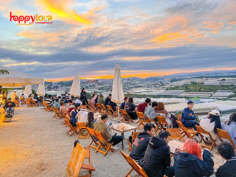 Quý khách đi ngắm hoàng hôn tại Xóm Lèo. Hoàng hôn Xóm Lèo Đà Lạt mang vẻ đẹp bình yên, lãng mạn đẹp tựa như một thước phim quay chậm. Với view thung lũng chất lượng, chỉ cần diện một bộ cánh "xinh xắn" và tự do tạo dáng, quý khách có thể cho ra đời những bức ảnh "triệu like". Ngoài ra, quý khách có thể thưởng thức những món ăn đường phố đậm chất Đà Lạt như: Bánh tráng nướng, sữa đậu nành, trứng nướng,... Dọc hai bên men đường đến Xóm Lèo, với giá món ăn, nước uống ở cũng khá hợp lý, dao động chỉ từ 20K đến 100K.