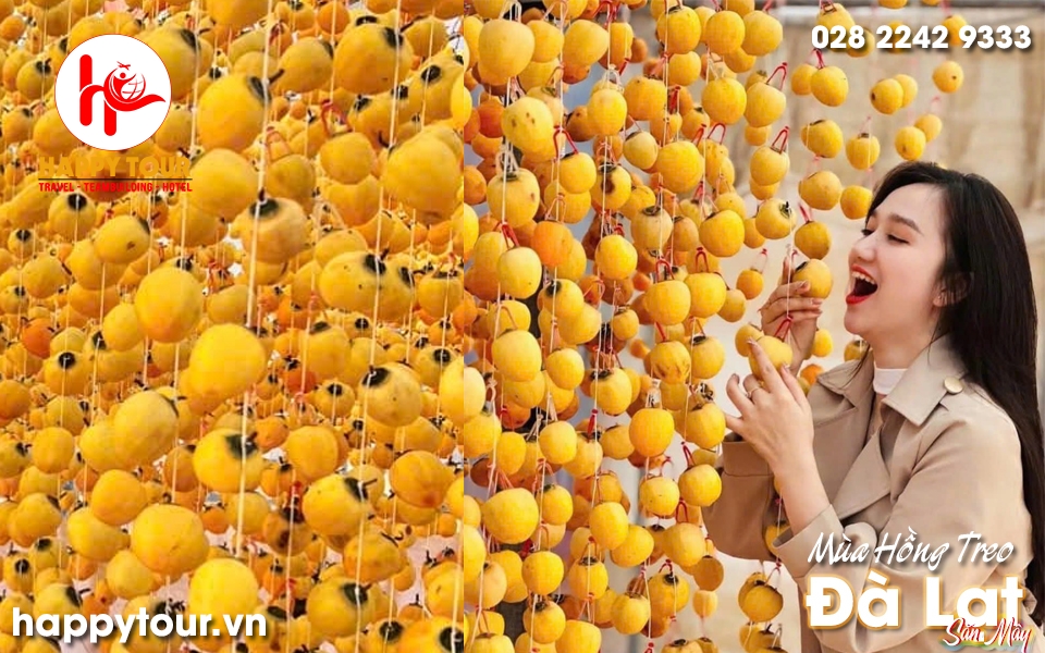 - VƯỜN HỒNG TREO GIÓ ĐÀ LẠT – Đến hẹn lại lên, mùa hồng Đà Lạt trở lại những loạt ảnh siêu dễ thương. Đến Đà Lạt, không chỉ săn mây, thưởng thức những món ăn đặc trưng trong tiết trời se lạnh, quý khách còn có thể trải nghiệm làm người dân chăm vườn hồng và khám phá quy trình sản xuất hồng treo gió có tiêu chuẩn đứng top 1 Đà Lạt. Quý khách tự do chụp ảnh sống ảo tại vườn hồng và tự túc thưởng thức hồng treo gió hoặc có thể mua về làm quà tặng cho người thân.
