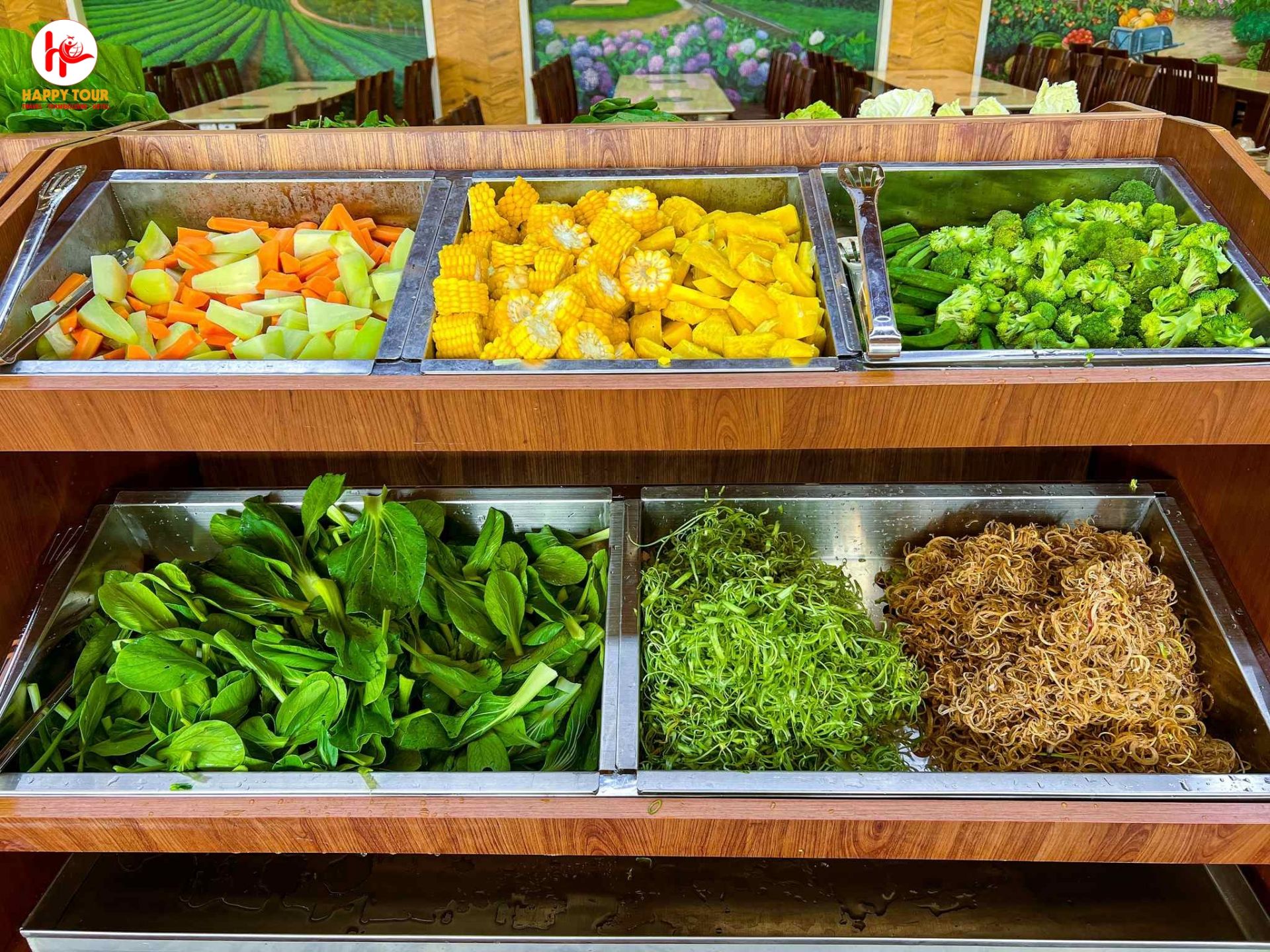 18h00: Quý khách đến nhà hàng buffet rau không giới hạn dùng bữa tối.