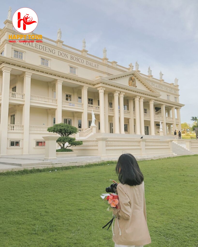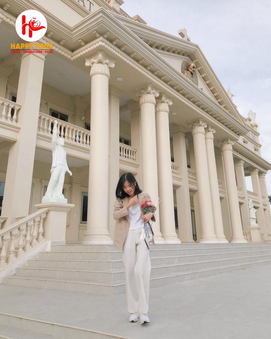 - NHÀ MỤC DON BOSCO thu hút mọi người với lối kiến trúc đậm nét phương Tây sang trọng, hiện đại, lấy cảm hứng từ những ngôi đền trong thần thoại Hy Lạp với cột trụ khổng lồ cùng tông màu trắng tinh khôi. (Trường hợp nhà Mục đóng cửa sẽ chuyển sang tham quan nhà thờ Domain De Mari)