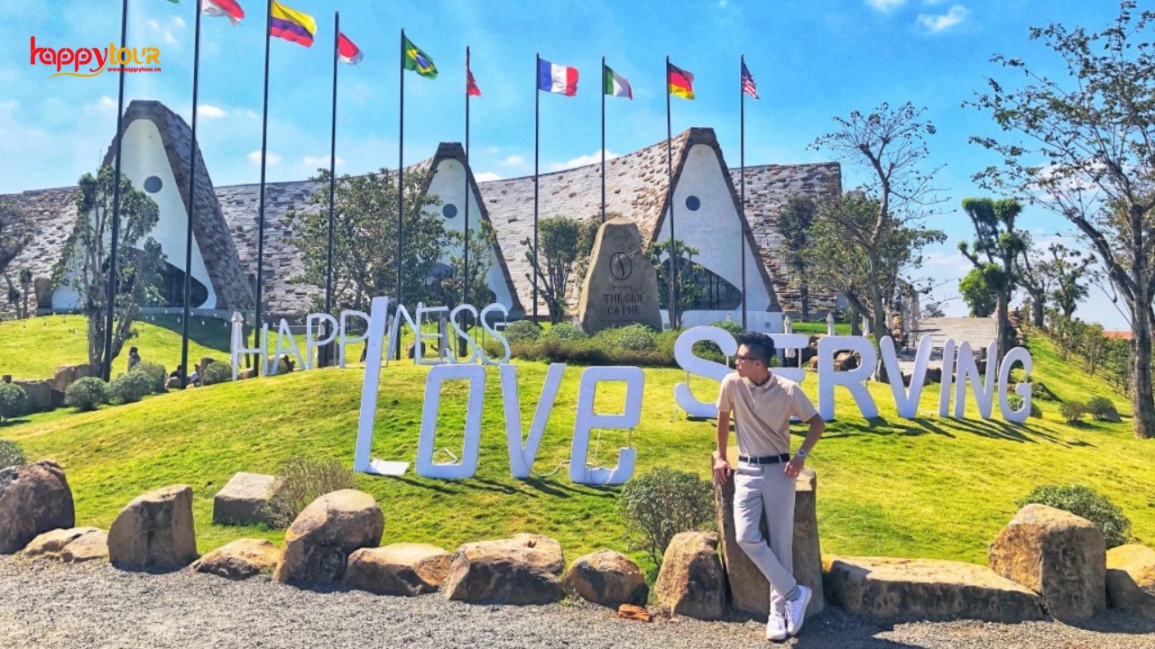 Quý khách tham quan: Bảo tàng thế giới Cà Phê: được thiết kế theo hình dáng của những ngôi nhà dài truyền thống của người Ê Đê và bao gồm 5 khối nhà uốn cong đầy ngẫu hứng.